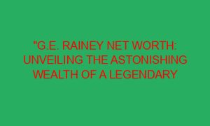 G.E. Rainey Net Worth: Unveiling the Astonishing Wealth of a Legendary Business