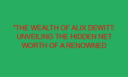 The Wealth of Alix DeWitt: Unveiling the Hidden Net Worth of a Renowned Personality Introduction: Have you ever wondered how much money famous individuals have? Do you ever imagine living a life of luxury and endless possibilities? Well, let’s delve into the fascinating world of Alix DeWitt, a renowned personality whose wealth has remained a mystery to many. Alix DeWitt is known for her glamorous lifestyle, but just how much is she really worth? In this blog post, we will unveil the hidden net worth of Alix DeWitt, taking you on a journey of discovery and fascination. So, let’s ...Read more