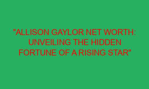 Allison Gaylor Net Worth: Unveiling the Hidden Fortune of a Rising Star Introduction: In the world of Hollywood, there are countless rising stars whose talent and hard work propel them to new heights. One such star is Allison Gaylor, a name that has been making waves in recent years. But have you ever wondered about her net worth? How much is she really worth? In this blog post, we will explore the hidden fortune of Allison Gaylor, uncovering the secrets behind her rise to success. 1. The Journey Begins: Allison Gaylor grew up in a small town, dreaming of ...Read more