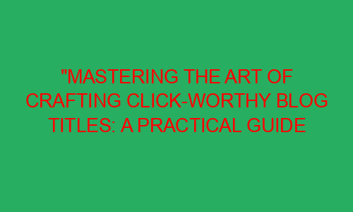 Mastering the Art of Crafting Click-worthy Blog Titles: A Practical Guide to Attract Readers, Rank on Google, and Stand Out! Introduction: Imagine you are browsing the internet, looking for an exciting blog to read. Your eyes graze over countless titles, but only a few catch your attention and compel you to click. Have you ever wondered how those bloggers master the art of crafting click-worthy titles? Well, wonder no more! In this practical guide, we will explore how to create captivating blog titles that not only attract readers but also rank on Google and make your content stand out ...Read more