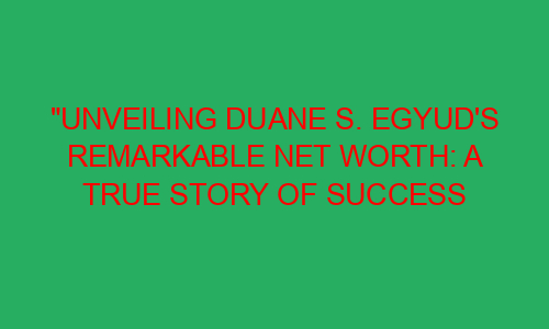 An Introduction to Duane S. Egyud’s Remarkable Net Worth Imagine a world where hard work, determination, and smart decision-making could lead to extraordinary success and wealth. This is the incredible story of Duane S. Egyud, a true embodiment of the American dream. From humble beginnings to amassing a remarkable net worth, Duane’s journey is an inspiring tale of perseverance and achievement. In this blog post, we will delve into the life of Duane S. Egyud and discover how he managed to build his vast fortune. So sit back, relax, and prepare to be amazed by this true story of ...Read more