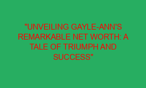 Introduction Welcome to the remarkable story of Gayle-Ann and her incredible net worth. Prepare to be inspired as we delve into the journey of triumph and success that has led to her financial achievement. Gayle-Ann’s story is filled with determination, hard work, and a sprinkle of luck. From humble beginnings to reaching the heights of prosperity, her tale is sure to captivate and motivate readers of all ages. Growing Up in a Small Town Gayle-Ann was born in a quaint little town named Lakefield. Surrounded by nature’s beauty, it was a place where everyone knew each other and helped ...Read more