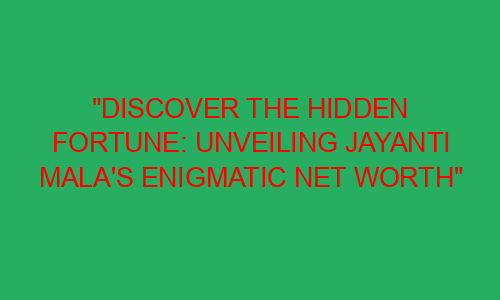 Discover the Hidden Fortune: Unveiling Jayanti Mala’s Enigmatic Net Worth Introduction: Have you ever wondered about the riches of the world? The vast ocean of wealth that some individuals possess often captivates our imagination. One such enigmatic figure is Jayanti Mala, a renowned businesswoman whose net worth has remained a mystery for years. In this blog post, we will embark on a journey to uncover the hidden fortune of Jayanti Mala. Prepare to be amazed as we delve into her intriguing story and explore the various aspects of her remarkable wealth. 1. Early Life and Rise to Prominence: Jayanti ...Read more