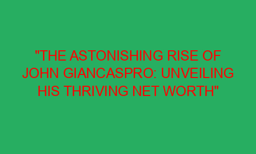The Astonishing Rise of John Giancaspro: Unveiling His Thriving Net Worth Introduction: Imagine a life where money is abundant and opportunities are endless. We all dream of achieving financial success, but for many, it remains an elusive goal. However, there are remarkable individuals like John Giancaspro who have managed to crack the code to wealth. In this blog post, we will delve into the astonishing rise of John Giancaspro and unveil his thriving net worth. Through his incredible journey, we hope to inspire and educate you on how to achieve financial prosperity. Section 1: The Early Days John Giancaspro ...Read more