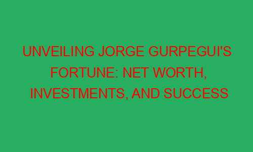 Jorge Gurpegui’s Fortune: Unveiling Net Worth, Investments, and Success Story Introduction: Have you ever wondered how some people become incredibly wealthy? Well, today we will uncover the fascinating story of Jorge Gurpegui, a successful entrepreneur who has amassed a tremendous fortune. Join us as we delve into the secrets behind his net worth, investments, and overall journey to success! Section 1: Early Beginnings Jorge Gurpegui’s journey to success started in a small town called Mora, where he grew up with his family. From a young age, Jorge showed incredible curiosity and a drive for learning. He recognized the importance ...Read more
