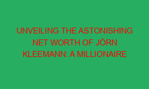 Unveiling the Astonishing Net Worth of Jörn Kleemann: A Millionaire Success Story Revealed Have you ever wondered how certain individuals achieve massive wealth and success? Today, we will delve into the fascinating journey of Jörn Kleemann, a self-made millionaire whose net worth is simply astonishing. Join us as we explore the various aspects of his life and uncover the secrets behind his remarkable success. In this blog post, we will provide an insight into Jörn Kleemann’s net worth, his entrepreneurial endeavors, and the lessons we can learn from his journey. So, let’s dive into this inspiring millionaire success story. ...Read more