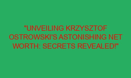Unveiling Krzysztof Ostrowski’s Astonishing Net Worth: Secrets Revealed! Hello everyone! Welcome back to our blog. Today, we have something truly fascinating to share with you. Have you ever wondered about the net worth of top entrepreneurs? How do they accumulate their wealth? Today, we are going to reveal the astonishing net worth of Krzysztof Ostrowski, a renowned entrepreneur, and share the secrets behind his success. So, let’s dive right in! Section 1: The Early Days of Krzysztof Ostrowski’s Journey Krzysztof Ostrowski, a humble and hardworking individual, began his journey in a small town. Growing up, he faced several challenges, ...Read more