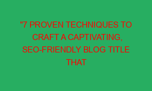 Introduction: Hey there! Are you struggling to come up with captivating blog titles that stand out on Google? Well, you’re in luck because I’m here to help you! Crafting a blog title that not only captivates your readers but also ranks high on search engines can be tricky, but with the right techniques, it’s totally doable. In this blog post, I’ll share with you 7 proven techniques to create captivating, SEO-friendly blog titles that will make your content shine. Let’s dive in! 1. Tell a Story: Stories have a magical way of capturing our attention. When crafting a blog ...Read more